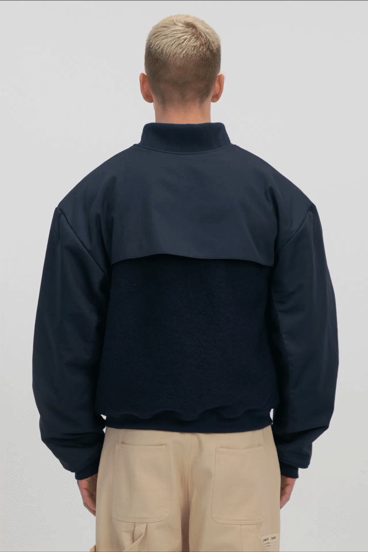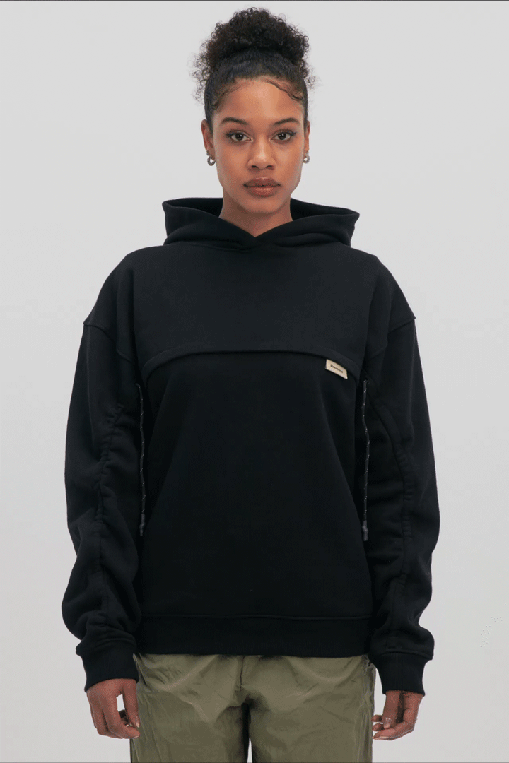 Der Pullover mit Passe hat einen sehr klassisch, sportlichen Schnitt, ist also weder cropped noch boxy geschnitten. Die Ärmel sind länger geschnitten und lassen sich durch den Kordelzug anpassen.